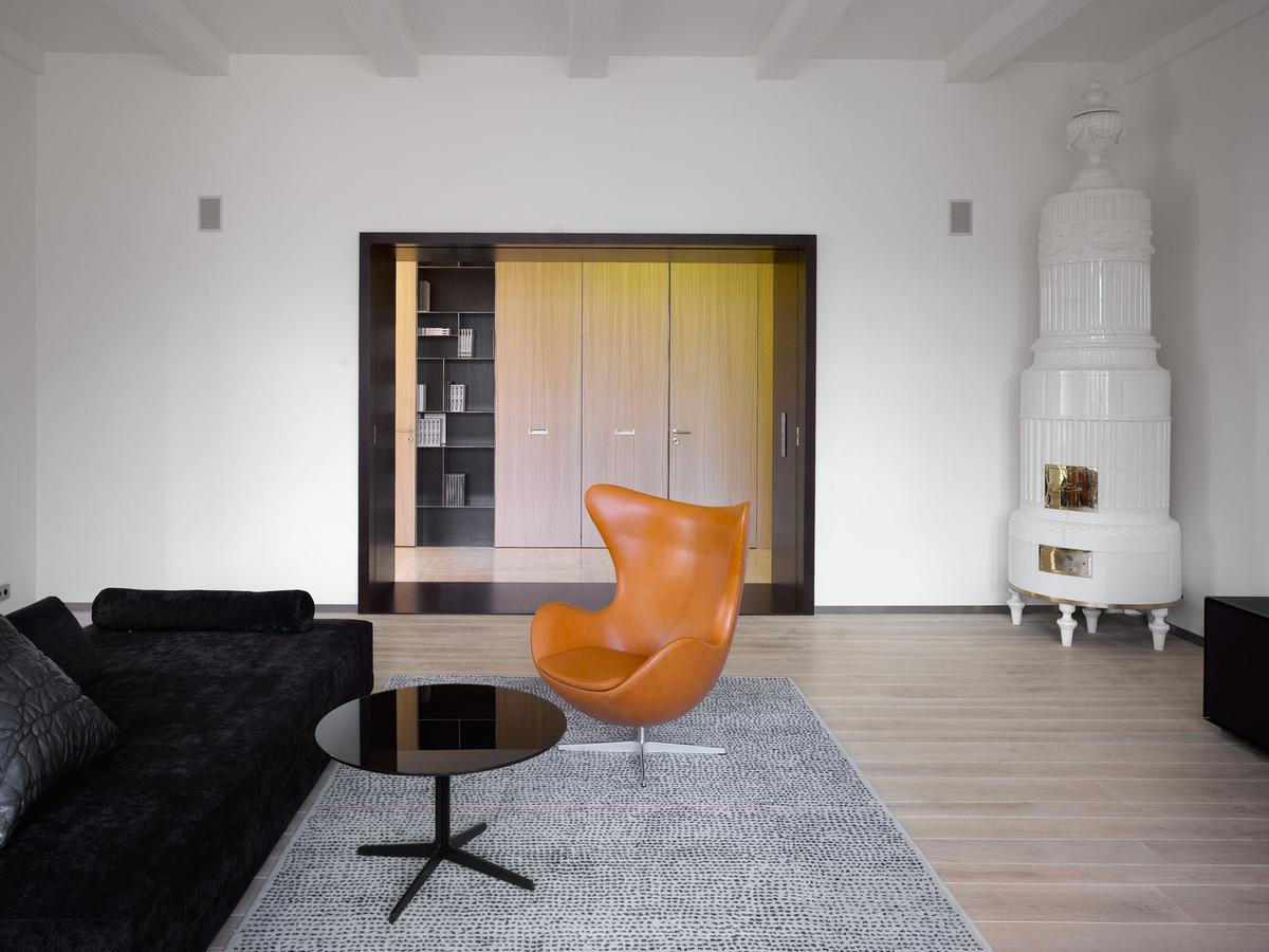 Byt je z převážné části řešen systémy vestavěného interieru včetně dveří, které jsou jejich neoddělitelnou součásti. Stavební úpravy jsou v těsné vazbě na tento interrier.